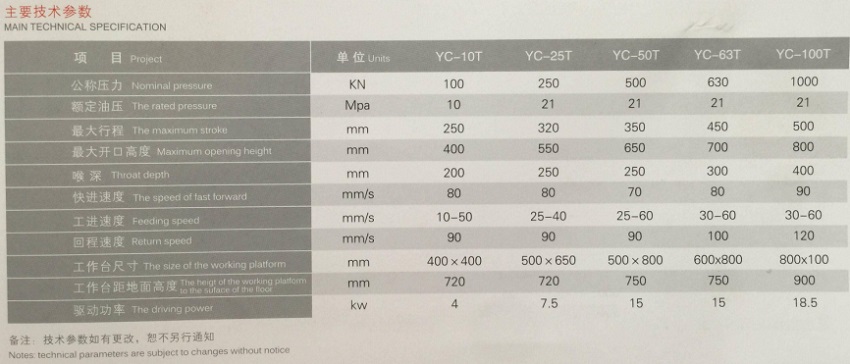 Type: YC-25T/50T/63T/100T